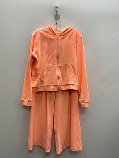 btween SIZE 12 Neon Coral Wide Leg Velour Girl's 2pc