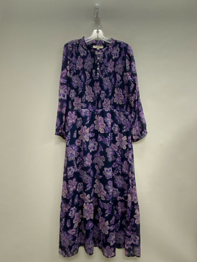 LOFT Size 14 Navy Purple Smocking Maxi Ladies Dress