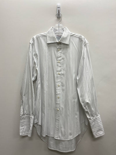 t.m. lewin Size 16 White Navy/Blue Stripes Button Up Men's Long Sleeve Shirt