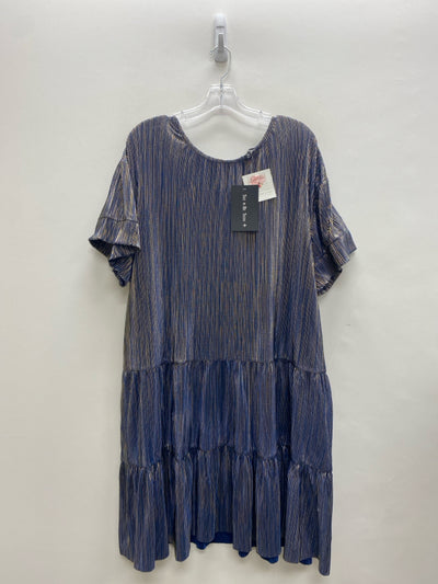 SEE AND BE SEEN SIZE 1X Blue/Gold Ribbed Metallic Plus Size Dress