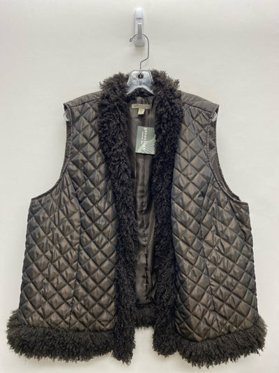 SIZE 1X Brown Fuzzy Drape Quilted Plus Size Vest