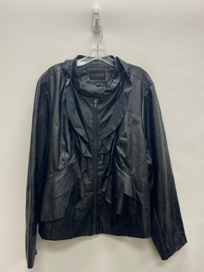 ELOQUII SIZE 28 Black Zip Down Faux Leather Plus Size Jacket