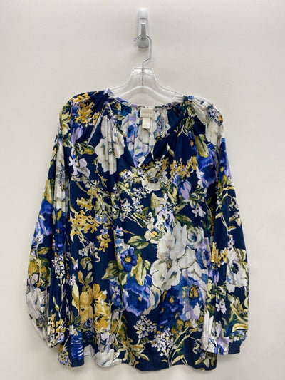 Chico's Size 2 Pink Navy/White Floral Button Up Ladies Top