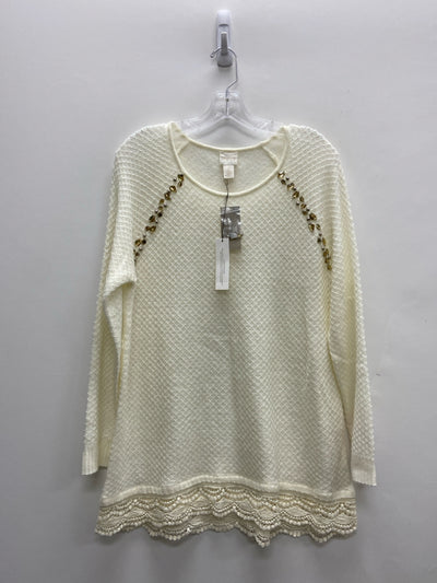 Chico's Size 2 White Chartreuse Beaded Ladies Sweater