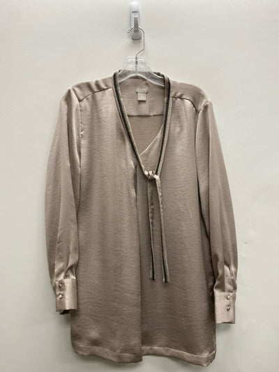 Chico's Size 2 Taupe Silver/Brown Beaded Ladies Top