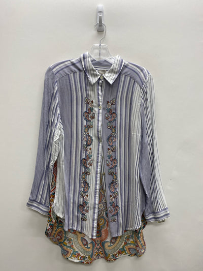 Chico's Size 2 White Navy/Multi Striped Embroidered Ladies Top