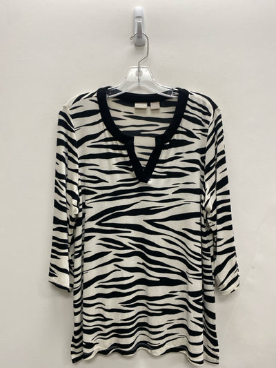 Chico's Size 2P White Black Zebra Print V Neck Ladies Top