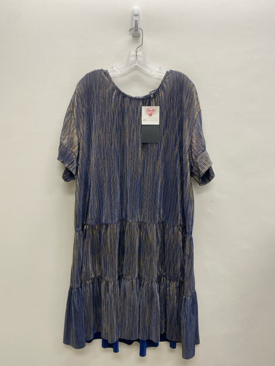 SEE AND BE SEEN SIZE 2X Blue/Gold Ribbed Metallic Plus Size Dress