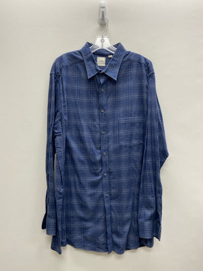 ROWM Size 2X Navy White Plaid Button Up Men's Long Sleeve Shirt