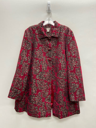 Chico's Size 3 Cranberry Tan Floral Ladies Coat