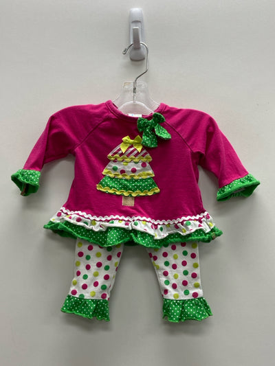 Nursery Rhyme SIZE 3-6M Fuchsia White/Green Christmas Girl's 2pc