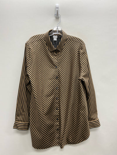 Chico's Size 4 Brown Black Stripes Button Up Ladies Top