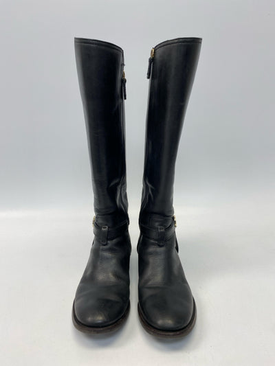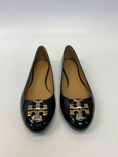 Tory Burch Size 9.5 Black Gold Logo Patent Flats