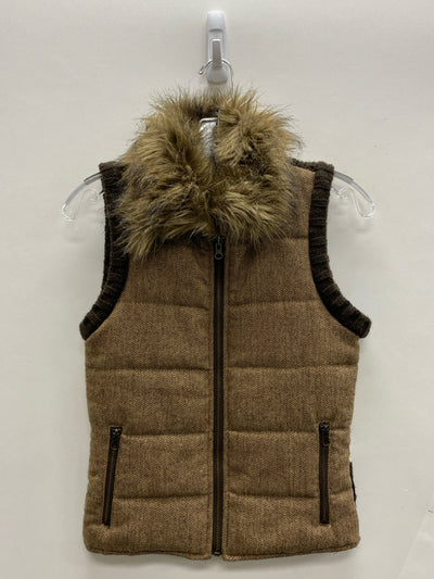 B B Dakota Size S Tan/Brown Zip Down Fur Collar Ladies Sweater Vest