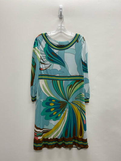 BCBG Size L Blue White/Multi Flowers Ladies Dress