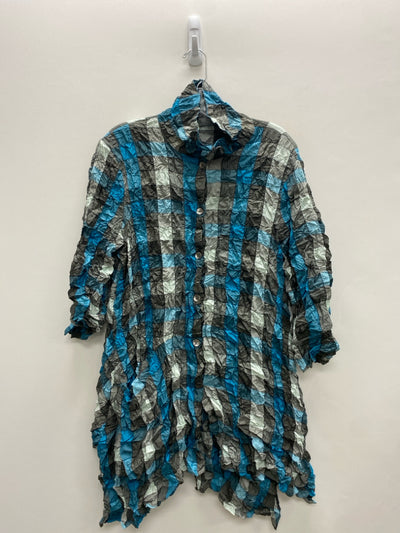 Chalet et ceci Size S Gray Blue/White Checkered Tunic Ladies Top