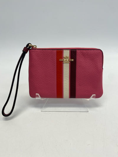 Coach Pink/Cream Brown Stripe(s) Wristlet