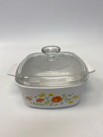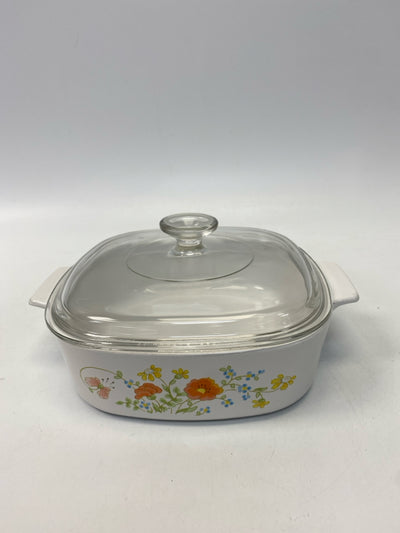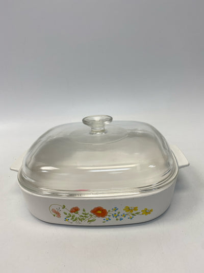 Corningware White Multi Color Flowers Bakeware