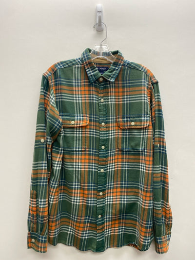 Cremieux Size L Green/White Orange/Navy Plaid Button Up Men's Long Sleeve Shirt