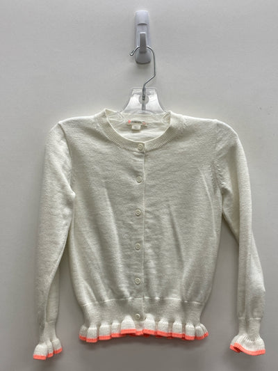 Crew Cuts SIZE 6/7 White Neon Coral Trimmed Cardigan Girl's Sweater
