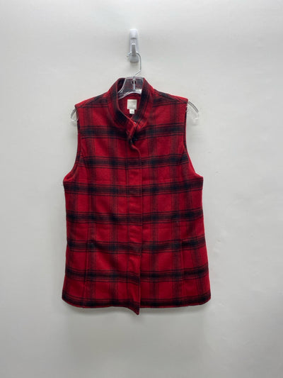J Jill Size M Red/Black Plaid Zip Down Ladies Vest