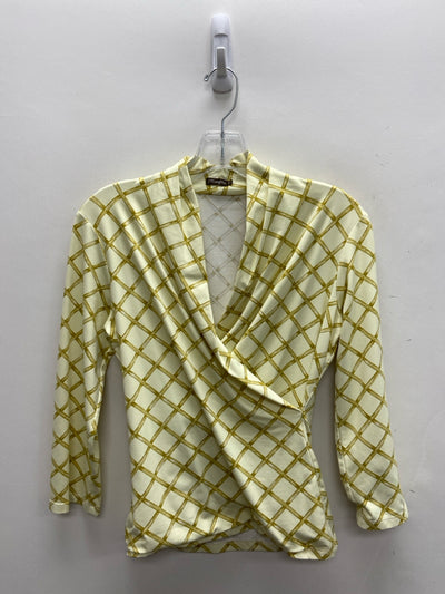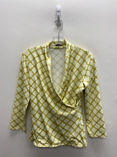 J McLaughlin Size S Yellow Chartreuse Squares Wrap Ladies Top