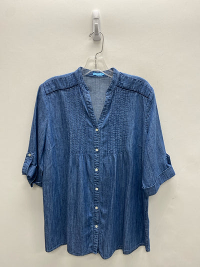 J McLaughlin Size M Blue V Neck Chambray Ladies Top