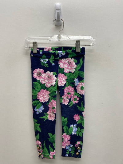 Janie and Jack SIZE 2T Navy/Green Pink/White Flowers Pull-on Girl's Leggings