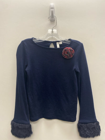 Janie and Jack SIZE 8 Navy Rosette Faux Fur Trimmed Girl's Top