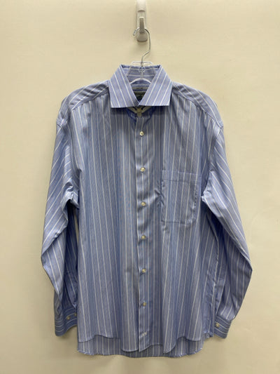 Johnston/Murphy Size M White/Blue Navy Striped Button Up Men's Long Sleeve Shirt