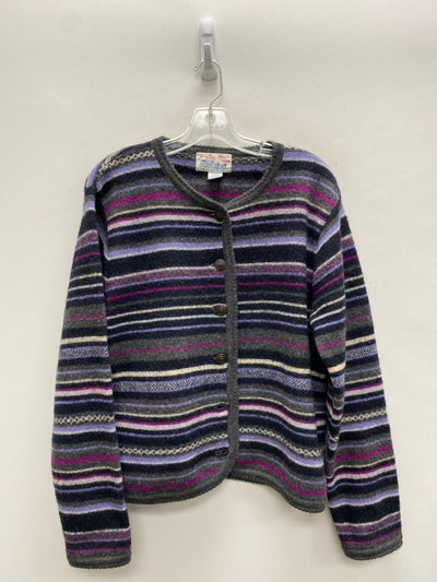 Size L Black/Gray Purple Striped Button Up Wool Ladies Sweater
