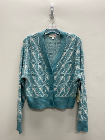 Size L Blue Cream Print Cardigan Ladies Sweater