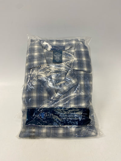 Towncraft Size L Blue Cream Plaid Flannel Men's Pajamas