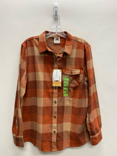 zero xposur Size L Terra Cotta Beige Checkered Button Up Ladies Top
