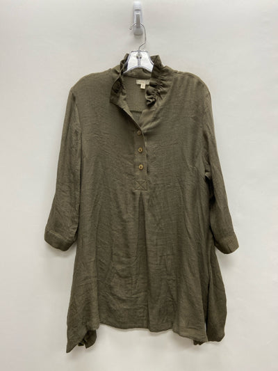 WISHLIST Size L Dark Olive Quarter Button Ladies Top