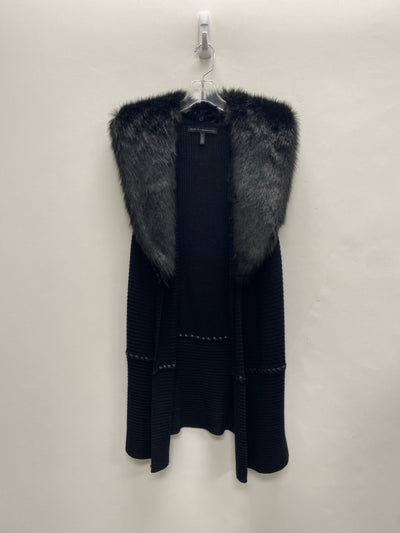 Wht House/Blk Mkt Size L Black Drape Faux Fur Collar Ladies Sweater Vest