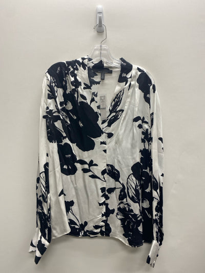 Wht House/Blk Mkt Size L White Black Floral V Neck Ladies Top