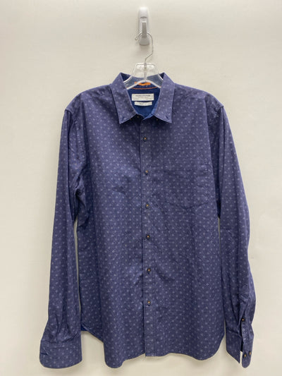 Denim & Flower Size L Navy Print Button Up Men's Long Sleeve Shirt