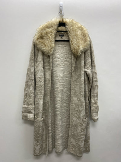 coco+carmen Size L Beige Taupe Medallion Drape Faux Fur Collar Ladies Sweater