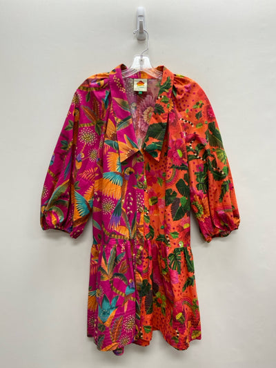 farmrio Size L Orange Fuchsia/Multi Birds Button Up Ladies Dress