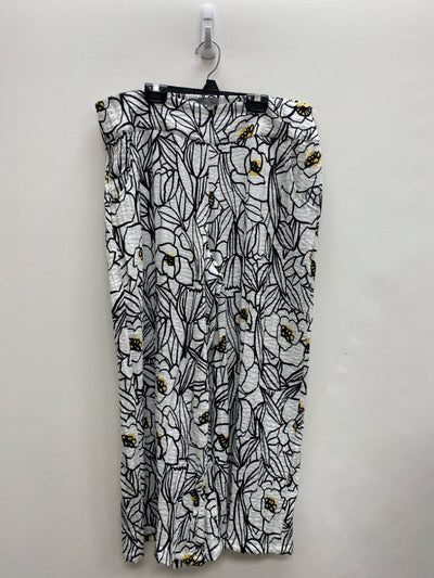 HabitaT Size L White Blue/Yellow Flowers Pull-on Ladies Pants