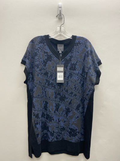 Lysse' Size L Black Blue/Gray Abstract Reversible Ladies Sweater