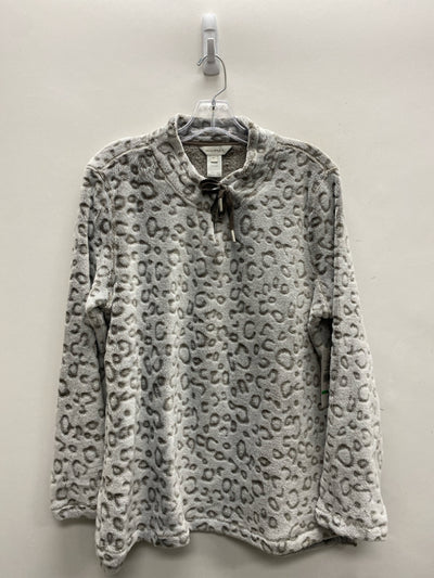 Multiples Size L White Taupe Animal Print Pullover Ladies Top
