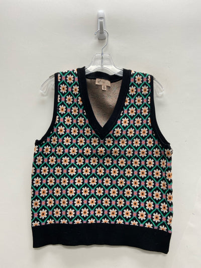 philosophy Size L Black White/Green Flowers Sleeveless Ladies Sweater