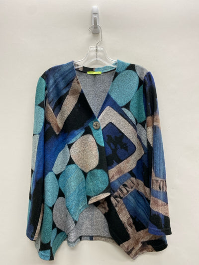 Size L Aqua/Black Gray/Brown Abstract Drape Ladies Sweater