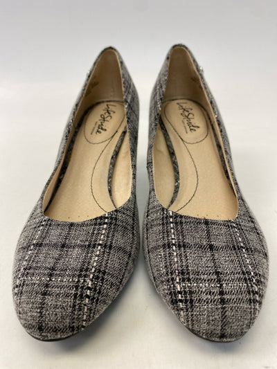 Life Stride Size 7.5 Gray Plaid Fabric Heels