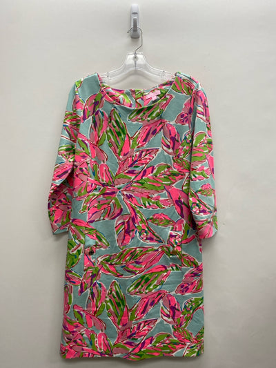 LILLY PULITZER Size L Blue/Green Neon Pnk Leaves Ladies Dress