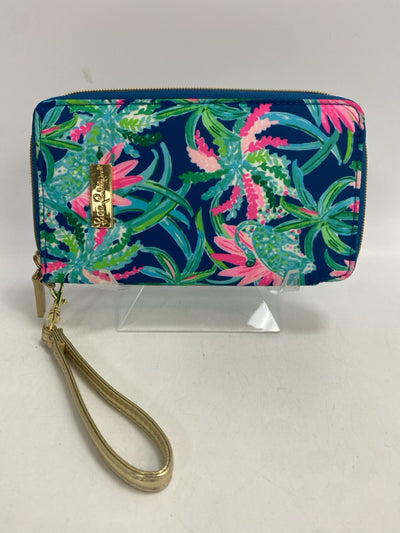 LILLY PULITZER Teal Blue Pink/Green Flower(s) Wristlet
