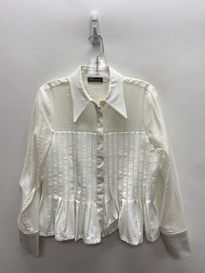 Mint Velvet Size M White Pleated Button Up Sheer Ladies Top