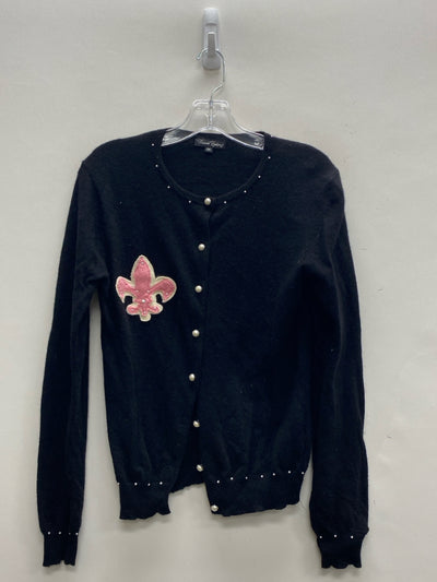 Size M Black Pink/White Fleur de lis Cardigan Cashmere Ladies Sweater
